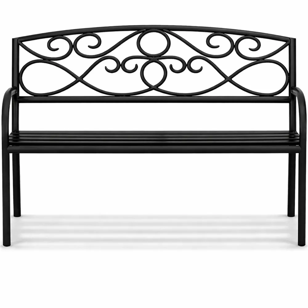 Ce banc d'extérieur est doté d'un cadre en métal avec un revêtement en poudre imperméable, adapté à diverses conditions météorologiques. Il résiste à la corrosion et à la déformation. Le motif floral ajoute un élément visuel au banc de jardin. L'angle de dossier et les accoudoirs incurvés sont conçus pour le confort. Il est fourni avec tous les accessoires nécessaires pour l'assemblage. Avec des dimensions de 52,6 x 127 x 81,8 cm, ce banc peut accueillir jusqu'à 3 personnes, adapté pour les jardins, parcs, patios ou porches.