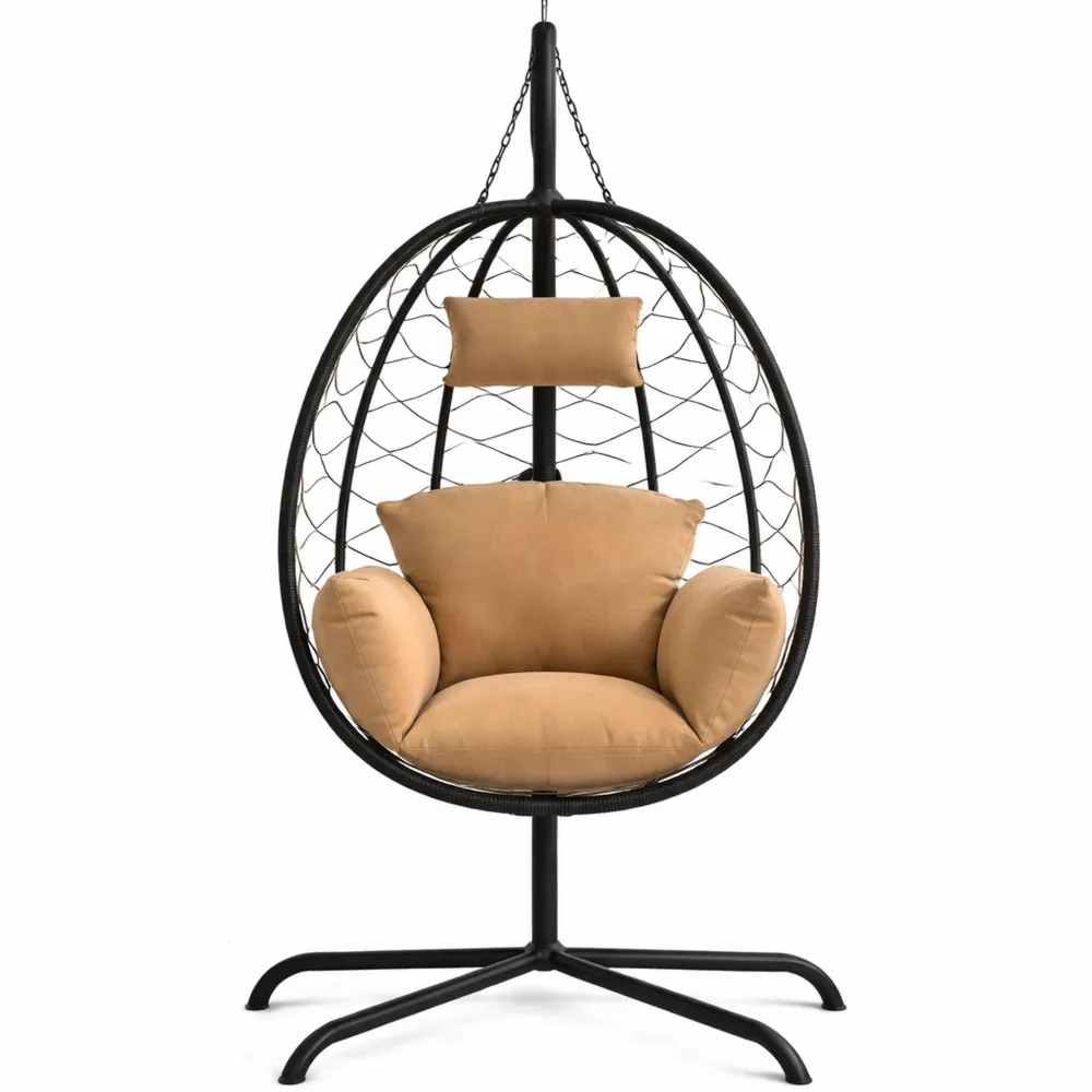 Cette chaise suspendue en forme d'œuf se caractérise par un matériau résistant aux intempéries, fabriqué en résine tressée, aussi connue sous le nom de rotin poly. Facile à entretenir, elle est idéale pour l'extérieur. Le cadre est en acier revêtu de poudre pour une protection supplémentaire. Le design pivotant permet de se bercer doucement. Le coussin et l'oreiller, bien rembourrés et amovibles, assurent un confort d'assise.
